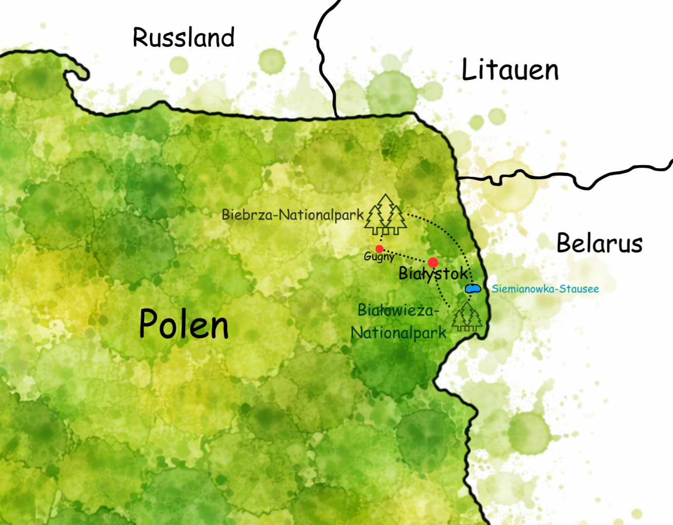 In unserem Nachbarland Polen liegen Naturgebiete, die einen einmaligen Stellenwert als große, unzerschnittene, natürliche Lebensräume besitzen: Der Urwald Bialowieza, die weite Ebene der Biebrza-Sümpfe und der Wigry-Nationalpark. Prädestiniert und international bekannt für die Vogel- und Naturbeobachtung sind sie alle!